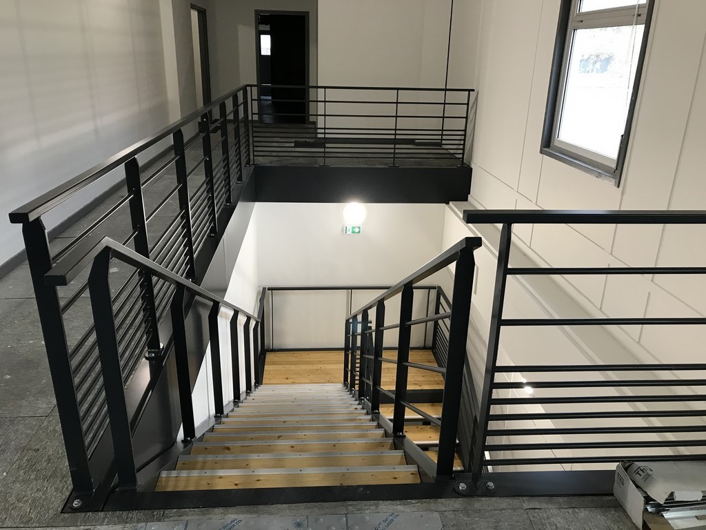 Réalisation et pose de garde-corps rampants en acier laqué pour les escaliers